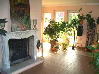 Entspannen Sie sich auf der grossen überdachten Terrasse und fühlen sich dort wie zu Hause. Der Wohnbereich ist hell und großzügig mit einer Gesamtgröße von 146 qm. Bei kälteren Tagen sorgt ein gemütlicher offener Kamin für wohlige Wärme. Topfpflanzen sorgen für eine warme Atmosphäre und unterstreichen das mediterrane Flair des Hauses.